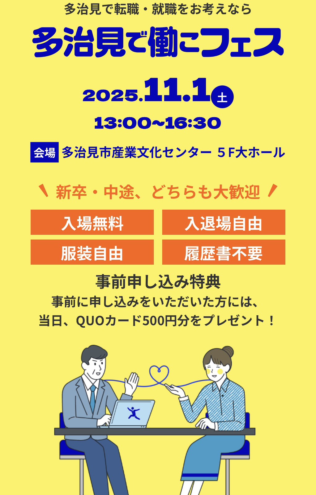 お知らせ 「多治見で働こフェス」就職合同説明会 2025.10.31 11/1(土)13:00より多治見市産業文化センター5階大ホールにて 就職合同説明会に出展いたします。 是非お越しください。 お待ちしております