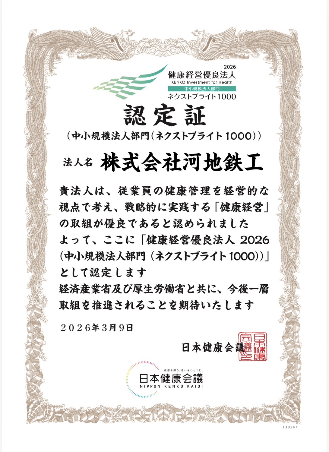 健康経営優良法人2026 ネクストブライト1000 認定証をいただきました!
