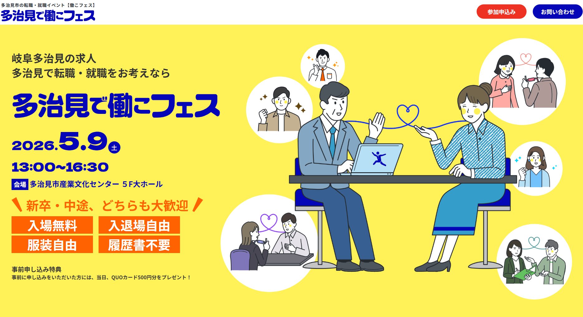 多治見商工会議所主催の”多治見で働こフェス”が2026年5月9日(土)13時より開催されます。